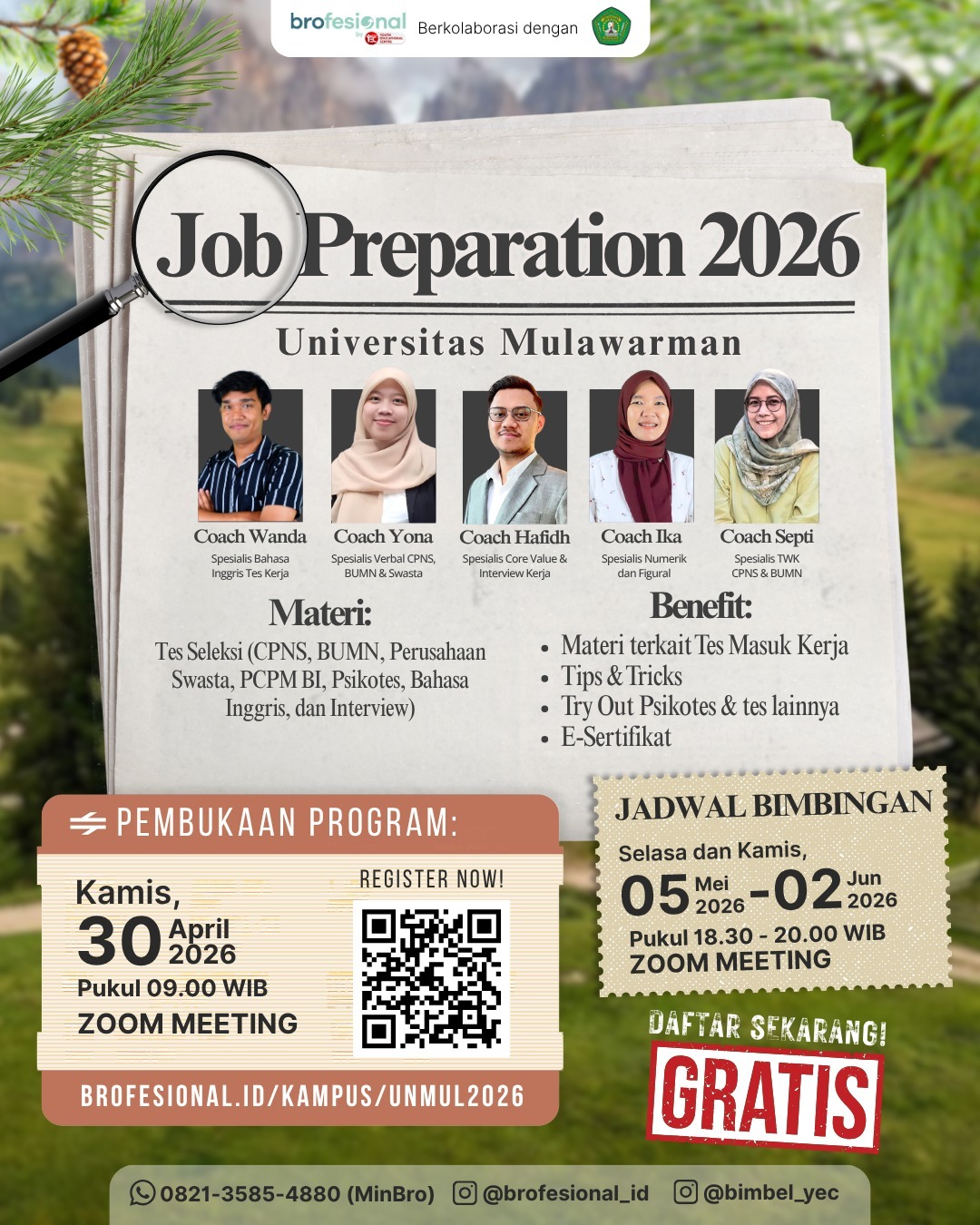 โจ *JOB PREPARATION 2026 is Calling You!* โจHallo Mahasiswa & Alumni UNMUL ๐๐ผKamu yang suka overthinking soal masa depan, mending over-preparing bareng Brofesional. Yuk persiapkan dirimu untuk insig...